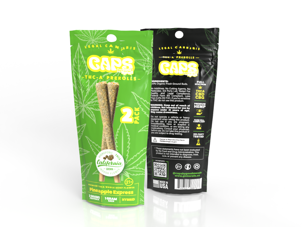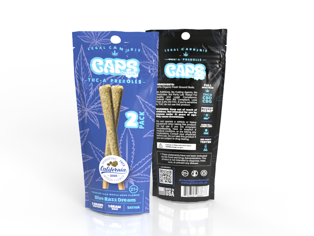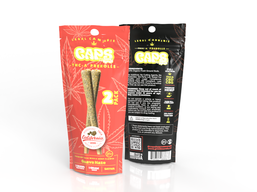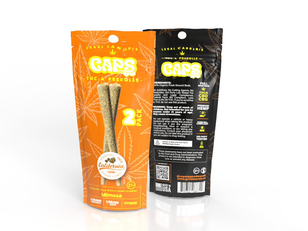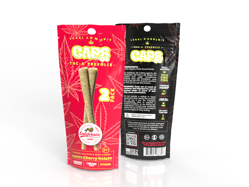 Indulge in the Caps By Good Morels THCa Pre-Rolls 2pk, a high-quality, hemp-based product that delivers full-spectrum effects and exceptional flavor. Each pack contains two 1-gram pre-rolls crafted from organic, indoor-grown hydroponic hemp flower, infused with THCa, CBD, and CBG for a clean, euphoric buzz. Whether you're a seasoned cannabis enthusiast or new to pre-rolls, these expertly curated pre-rolls offer a smooth, satisfying experience.