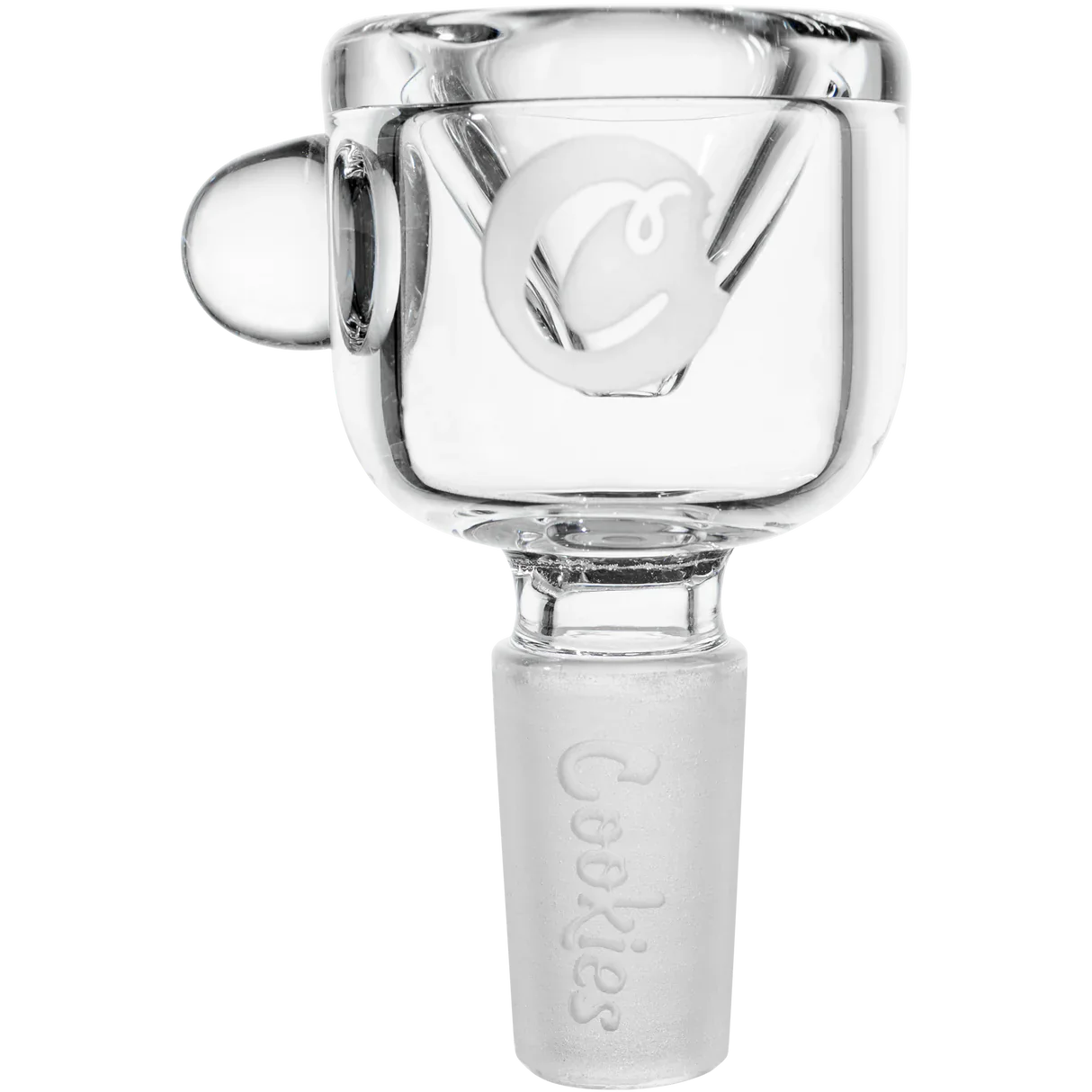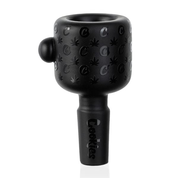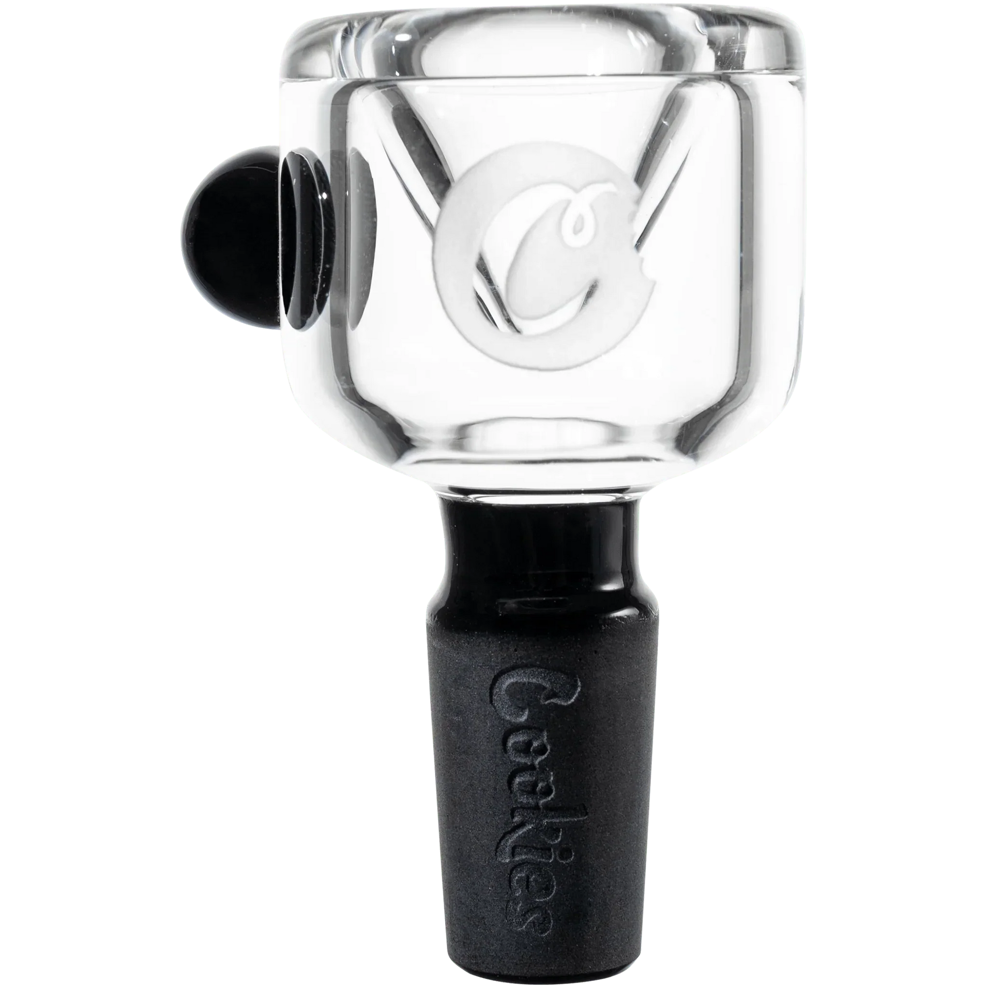 Hand Blown 14mm Bowl Piece features the unique Cookie V pattern. Available in White and Black.