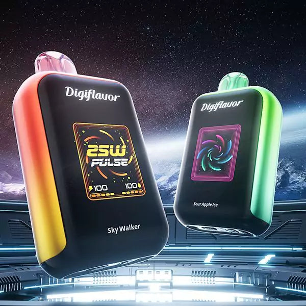 Shop the Digiflavor SKY 25K Disposable, featuring three firing modes, dual mesh coils, large 1.8" Smart Screen, eliquid and battery life monitoring, and delivers up to 25000 puffs, depending what mode it is set too.