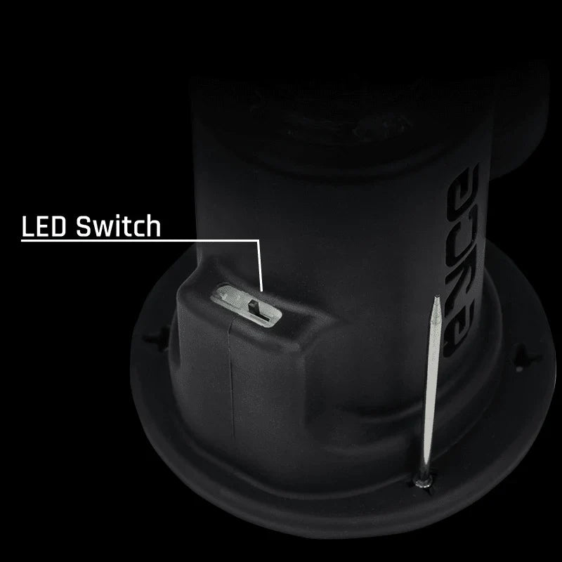 Introducing the Eyce Spark glass rig, the premier product of the Eyce ProTeck™ Glass Series. The Eyce Spark is an all glass piece backed by the protective silicone ProTeck™ sleeve. Each Spark comes equipped with a battery powered white LED light, concentrate bucket, flower bowl, steel poker, tool holders, and hidden storage. Additional LED colors are available with the purchase of the Eyce LED Expansion Pack. The LED Expansion Pack includes 5 LED lights - red, green, purple, white, and disco - a strobing party light.