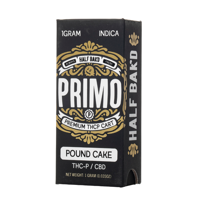 Discover Half Bak'd Primo Cartridge, featuring 1 gram of THC-P balanced with CBD in a postless 510 cartridge to deliver an exceptional blend of cannabinoids.