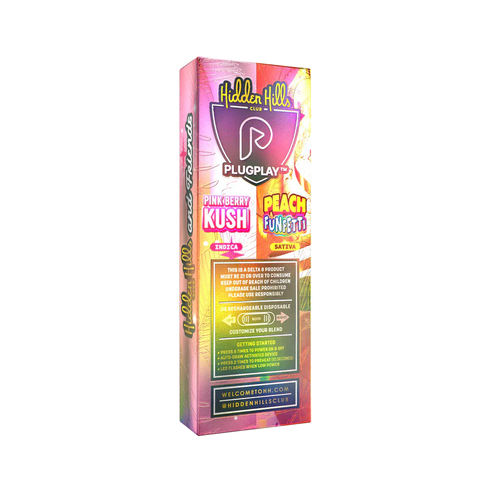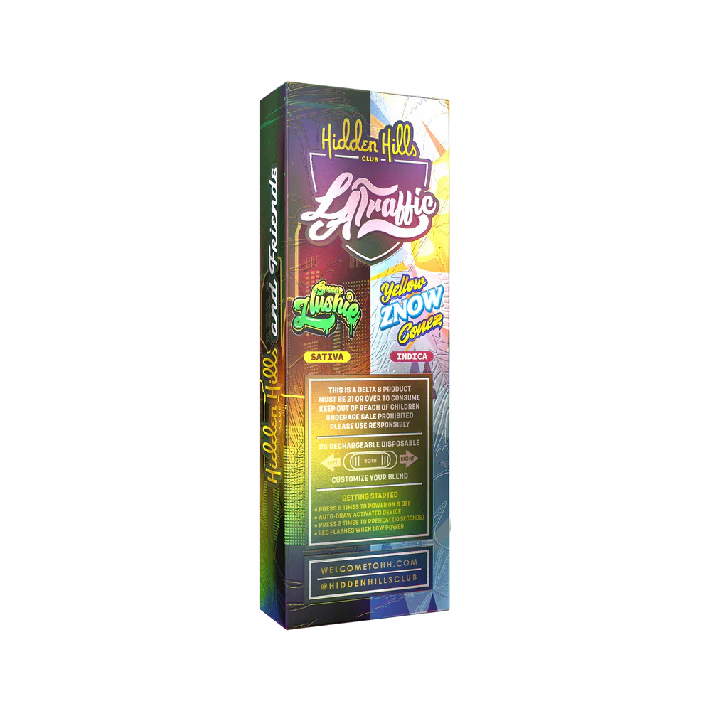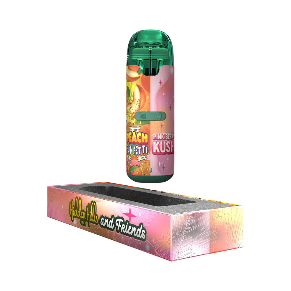 Check out the Hidden Hills THC-A Dual Flavor Bars, featuring THC-A, THC-P, and THC-M in a preheating disposable vape with two 1-gram tanks filled with concentrate from top cannabis companies. From respectable names in the cannabis industry like LA Traffic, PLUGPLAY, and Big Chief, the Hidden Hills Dual Flavor disposable is fueled with high-quality terpenes and oils that will tantalize the taste buds.