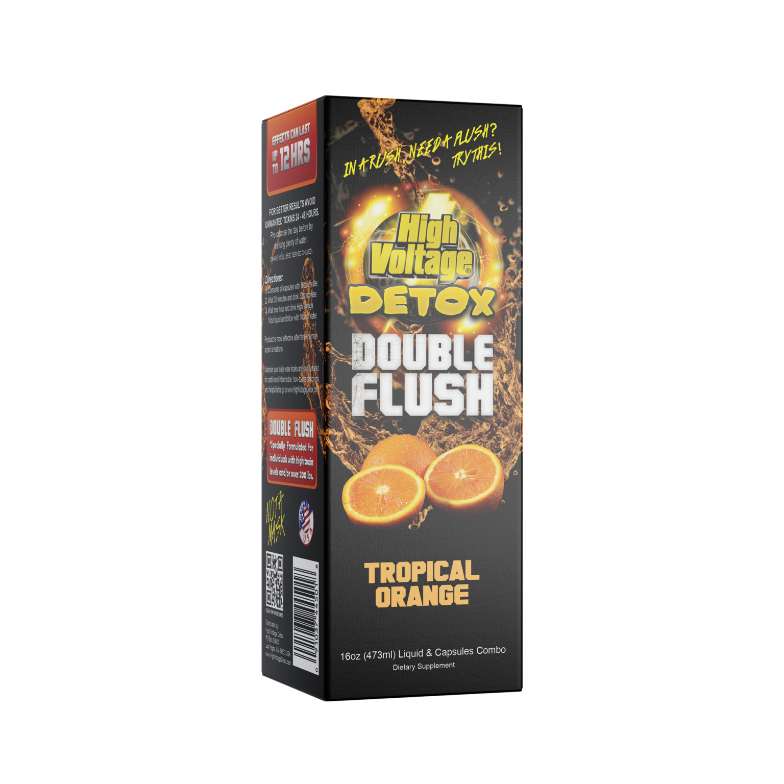 Do you want our most potent toxin cleanse? High Voltage Detox Double Flush was designed with power in mind. This combination of liquid and capsule detox was designed to flush high levels of toxins out of your system. Effective within 2 hours and lasting up to 12, this toxin eliminator is what you need for heavy toxins.