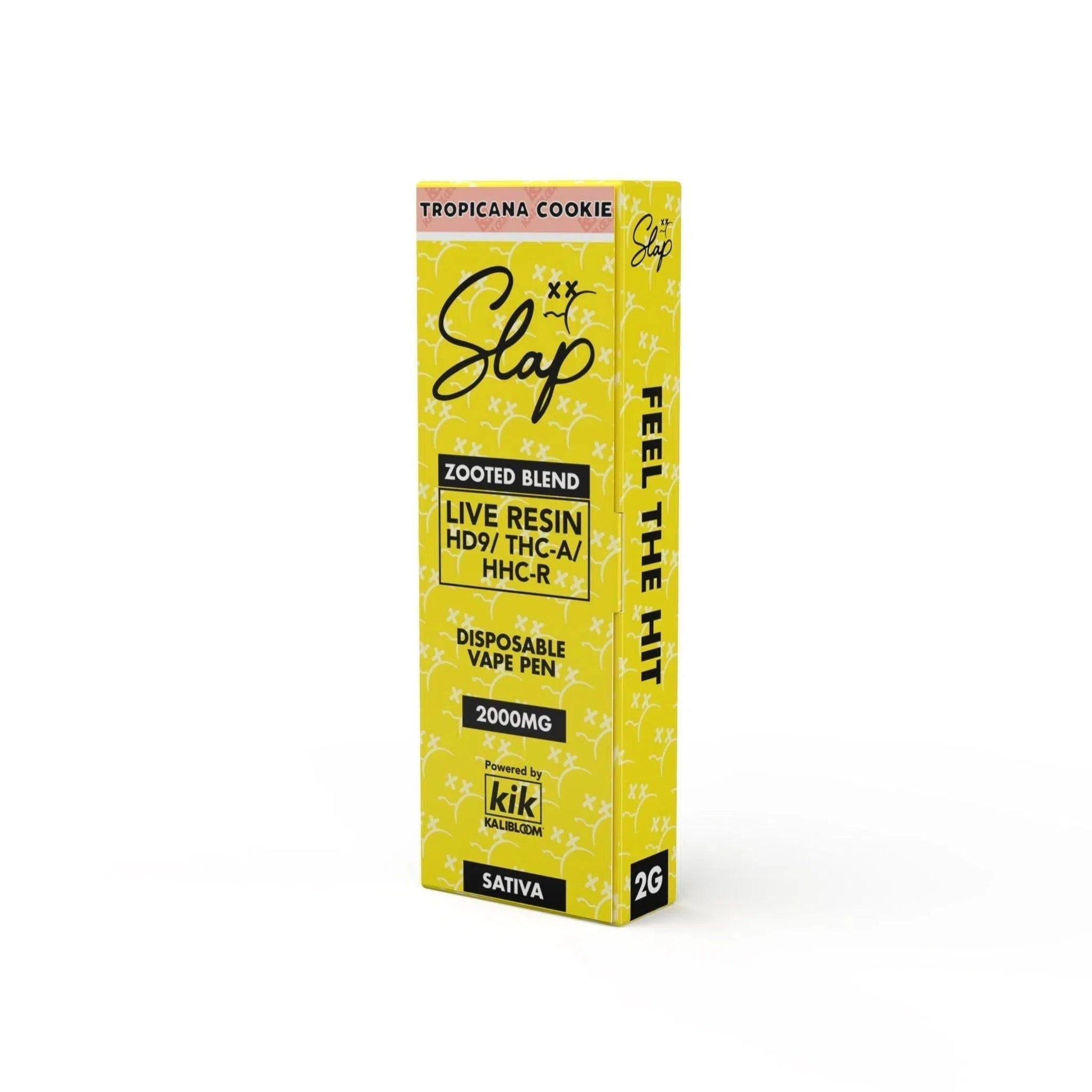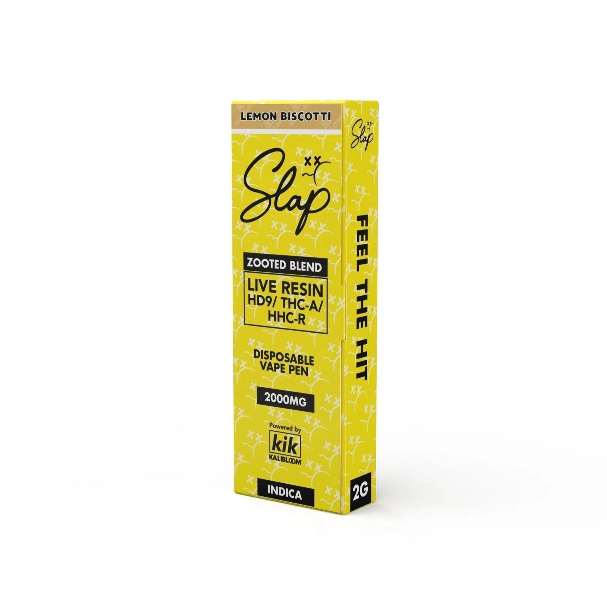 Shop the NEW Kalibloom KIK Slap Zooted Blend Live Resin Disposable, offering a 2 gram Slap you in ya' face Zooted Blend consisting of HD9, THCA, HHCR that is balanced with hemp terpenes.