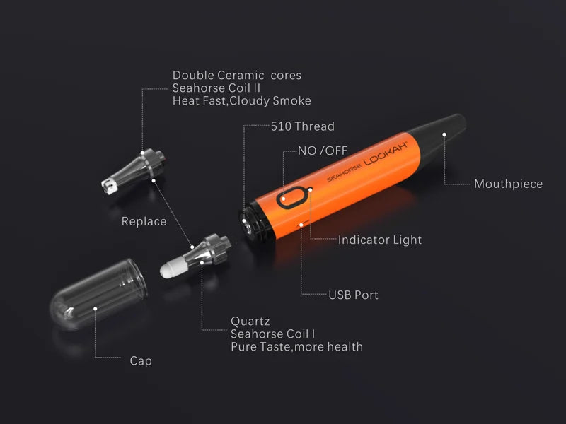 Lookah Seahorse Dab Pen won the 2019 Best Design Awards, it uses a quartz coil, not a ceramic coil, so it can give you the purest taste. The Lookah seahorse is not only a wax pen, but also fits all 510 cartridges so you can smoke oil such as e-juice through it as well, it has a 1.2 Ω resistance.