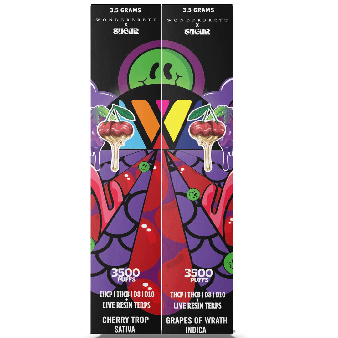 Discover the Sugar x Wonderbrett THC-A Disposable, featuring 3.5 grams of THC-A cannabinoids inside each disposable vape to uplift the spirit and soul. Made with the genetic profile of carefully-balanced Wonderbrett strains, like Cherry Trop or Grapes of Wrath, these strains are packed full of delicious terpenes and cannabinoids that all come together to create these wonderful disposables.