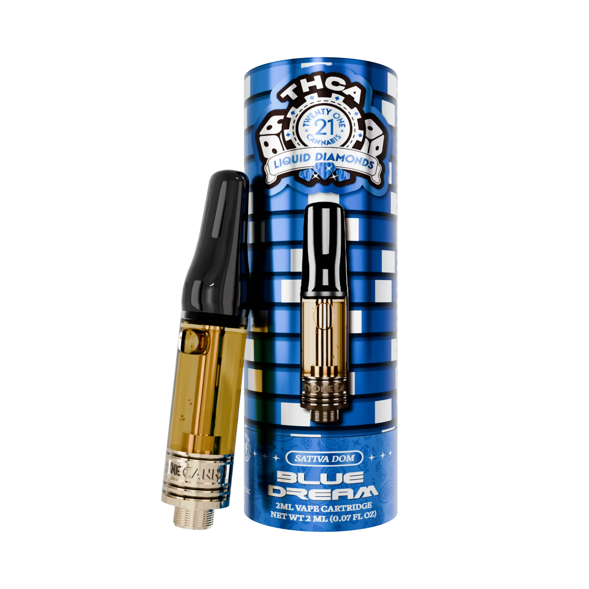Twenty One Cannabis THCA Cartridge 2g blends consist primarily of high percentages of Delta 8 THC, HHC and THCA derived from hemp. The assortment of Twenty One Cannabis THCA Cartridge 2g blends are as follows: