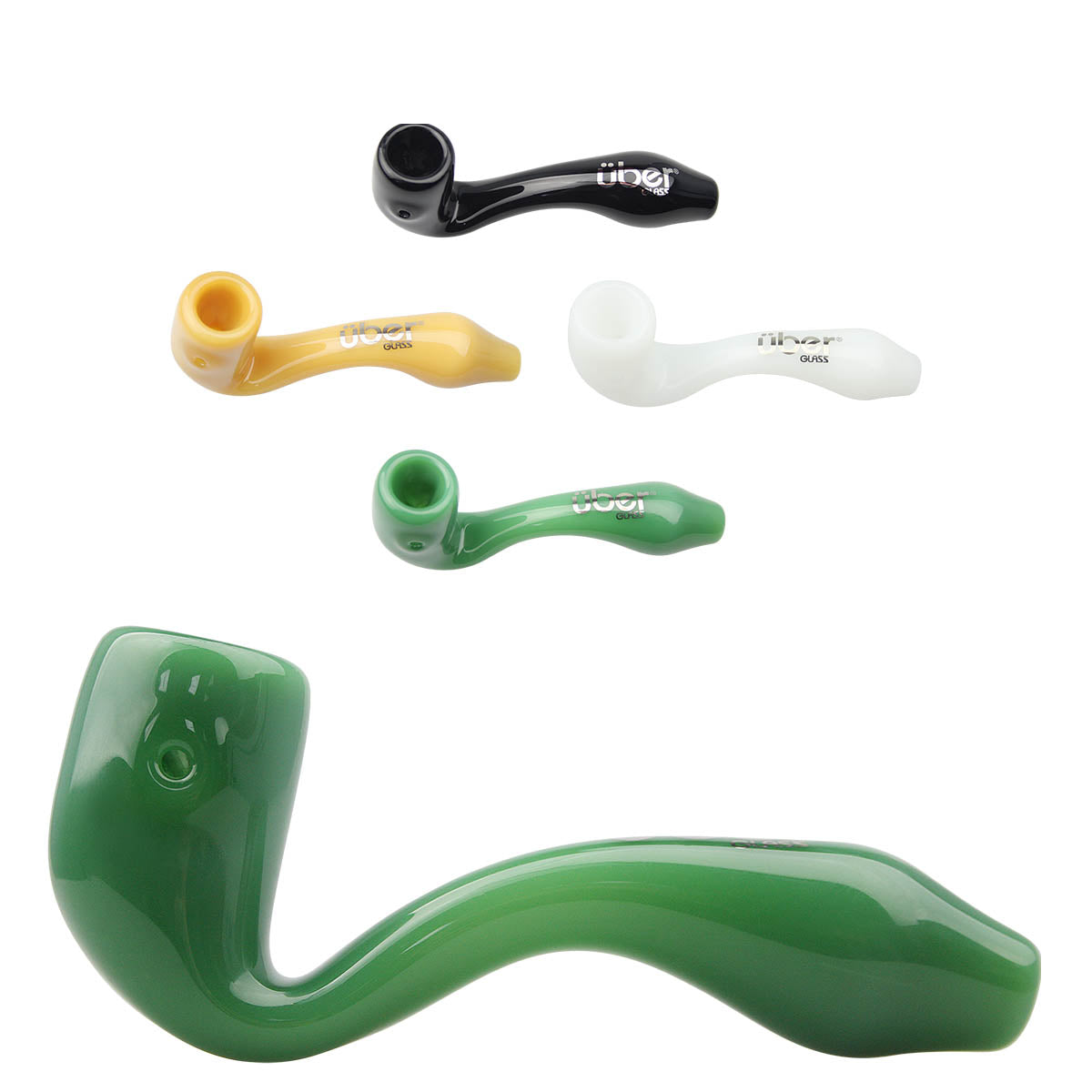 Choose sherlocks. Another classic shape is the curved hand pipe reminiscent of an old wooden pipe popularized by Sherlock Holmes AKA a sherlock. Uber Glass sherlocks are available in multiple varieties with flat bases to stay flat on a tabletop and available with curved bases for the most classic sherlock look.