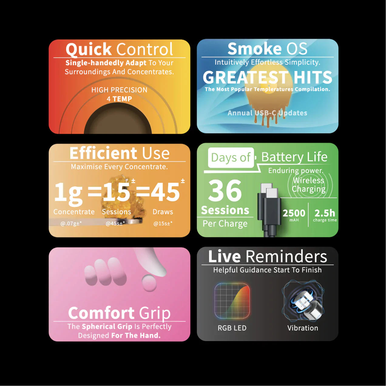The lower profiles would work best for consumers wanting to relax while the higher temperature levels are for the OGs that want to get blown off their socks the moment they draw from the Yocan Black Phaser Max 2 Concentrate Vaporizer.