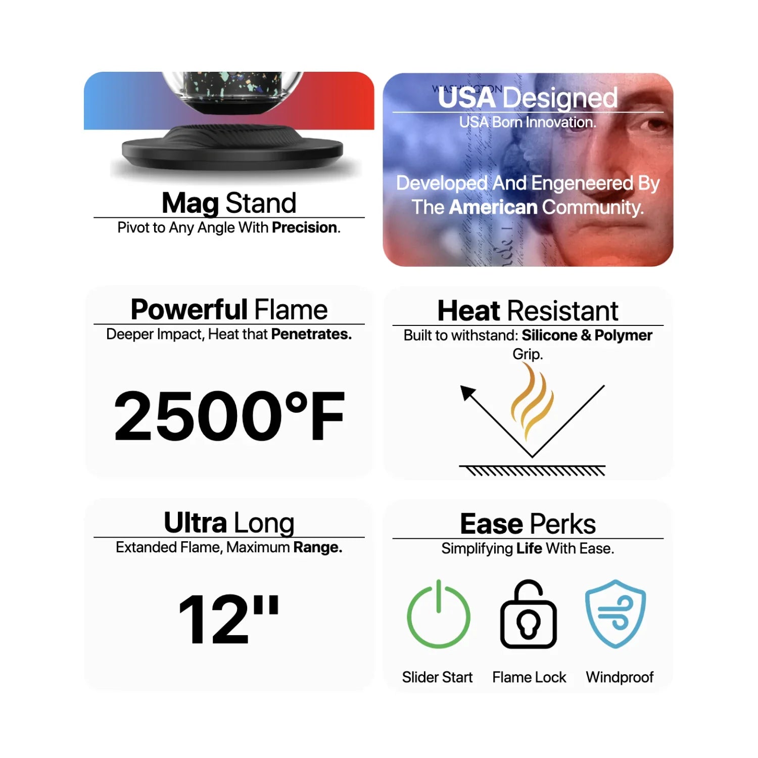 To add to the Yocan Red Gavin Torch’s spherical handle grip, it is equipped with Yocan’s Mag Stand technology that allows the Yocan Red Gavin Torch to pivot into place. That said finding the right angle and making sure your torch lighter stays there is made easier than ever.