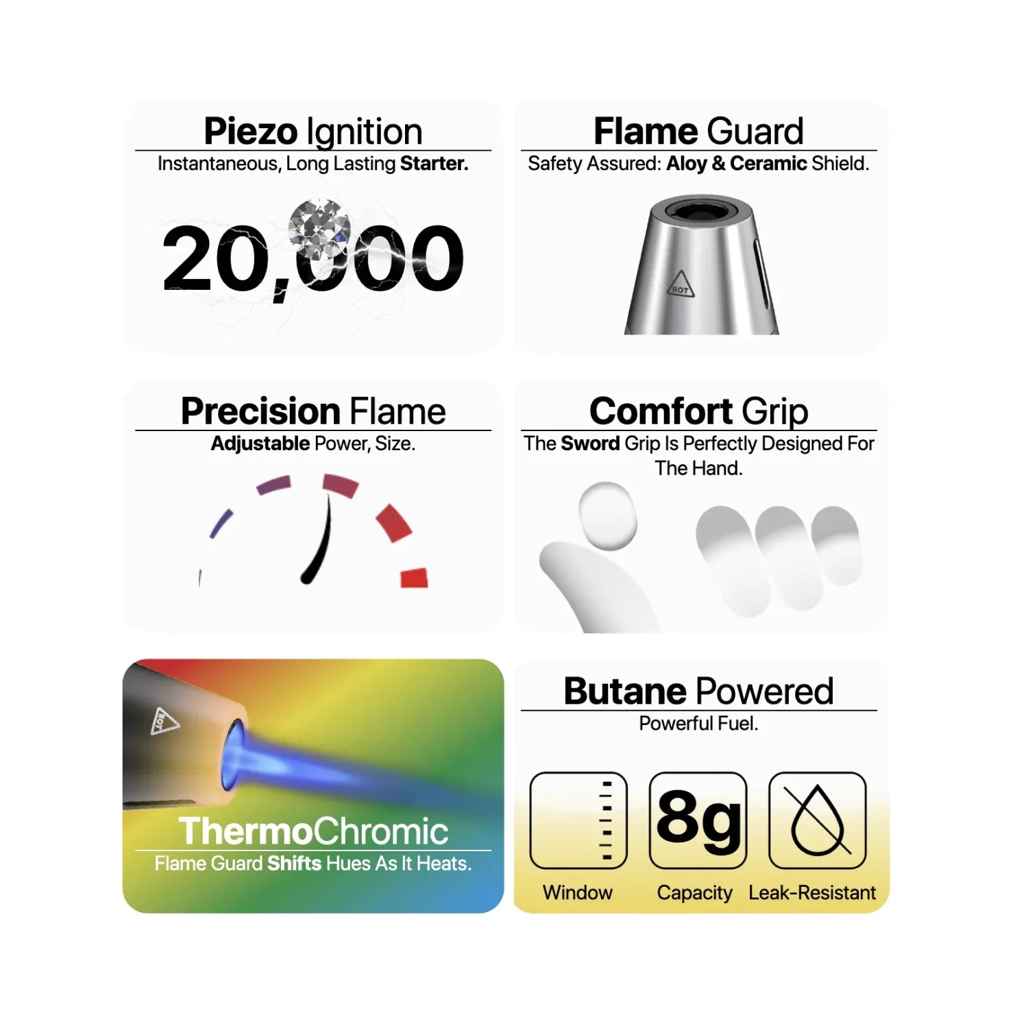 The Yocan Red Gavin Torch is equipped with a Piezo ignition system that ensures fast and immediate flame production. Piezo ignition uses a tiny spring-loaded hammer to hit an inorganic compound called lead zirconium titanate. The said action makes a high voltage and a residual electrical discharge that ensures the production of a flame when mixed with butane fuel.