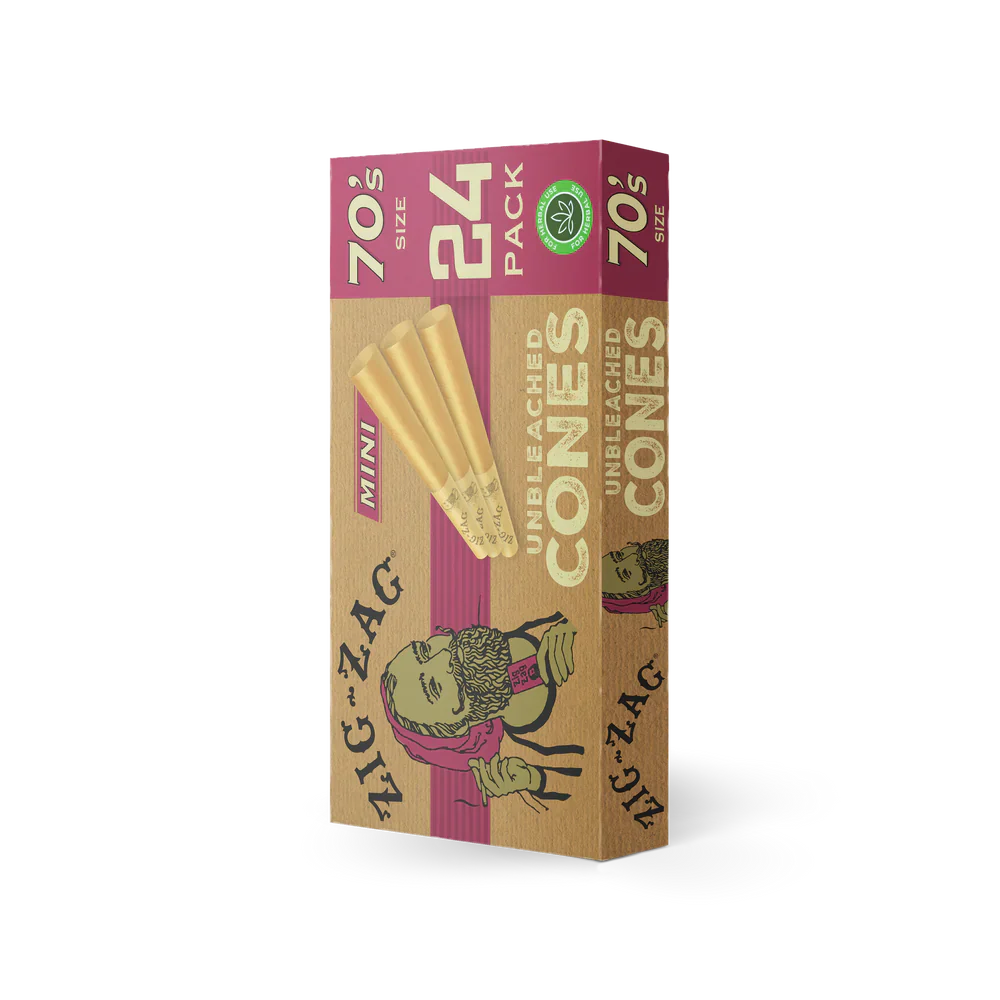 Zig Zag Mini Unbleached Cones - 70mm - 24 Cones Per Pack - 12 Packs Per Display