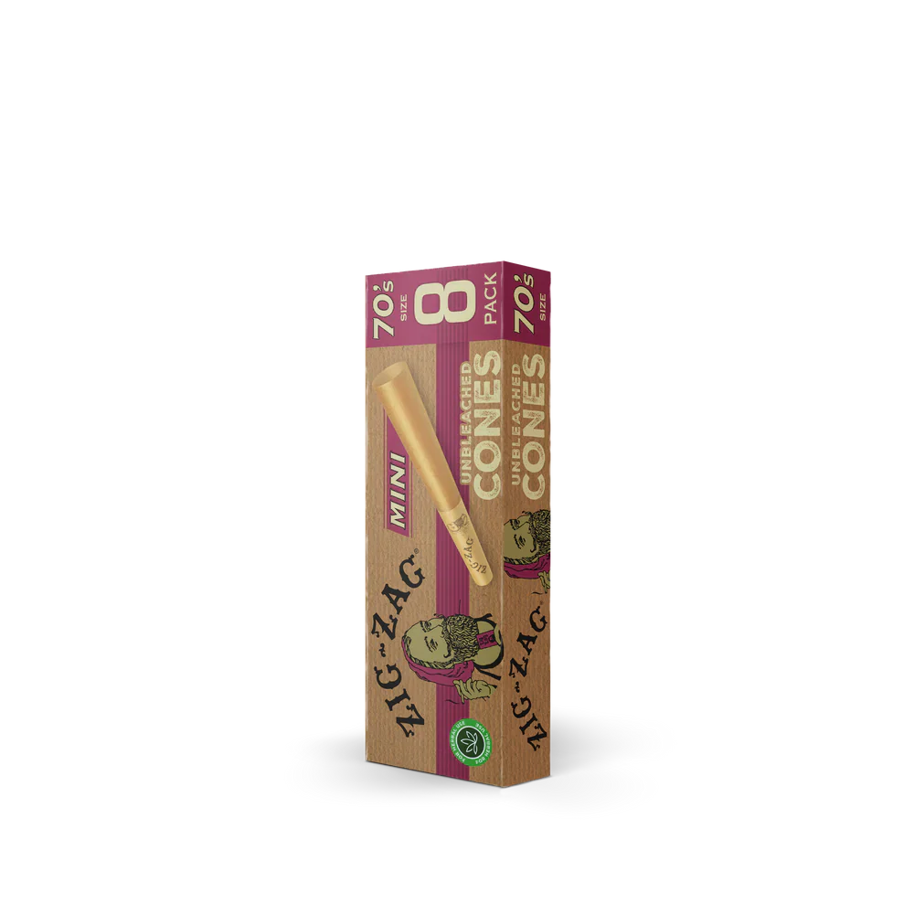 Zig Zag Mini Unbleached Cones 70mm - 8 Cones Per Pack - 18 Packs Per Display